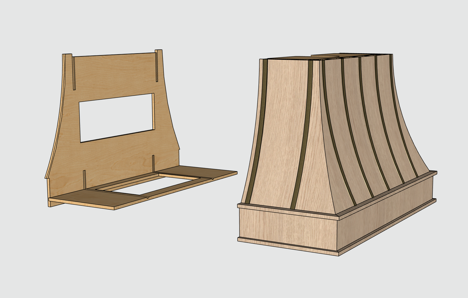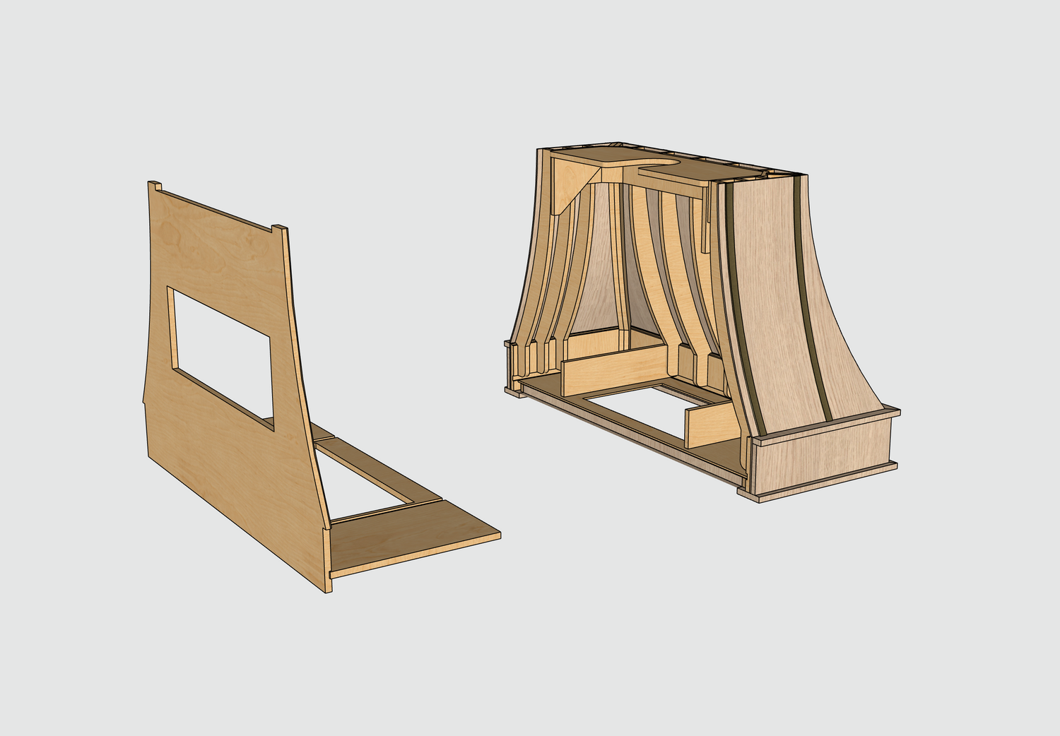Our Compound Curved Range Hood is made to order out of cabinet grade maple plywood.