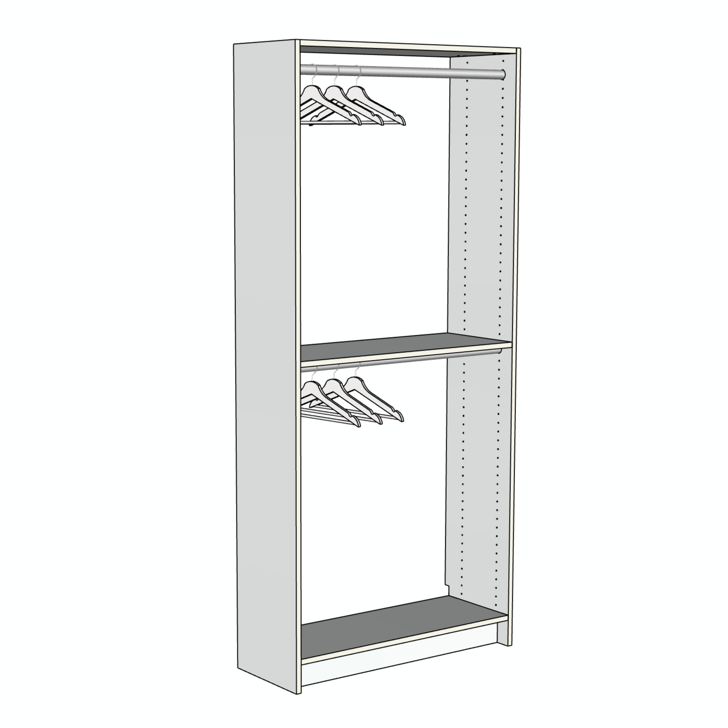 Our Custom Closet Double Hanging unit is made to order as a floor standing unit with toe kicks for a truly custom look.