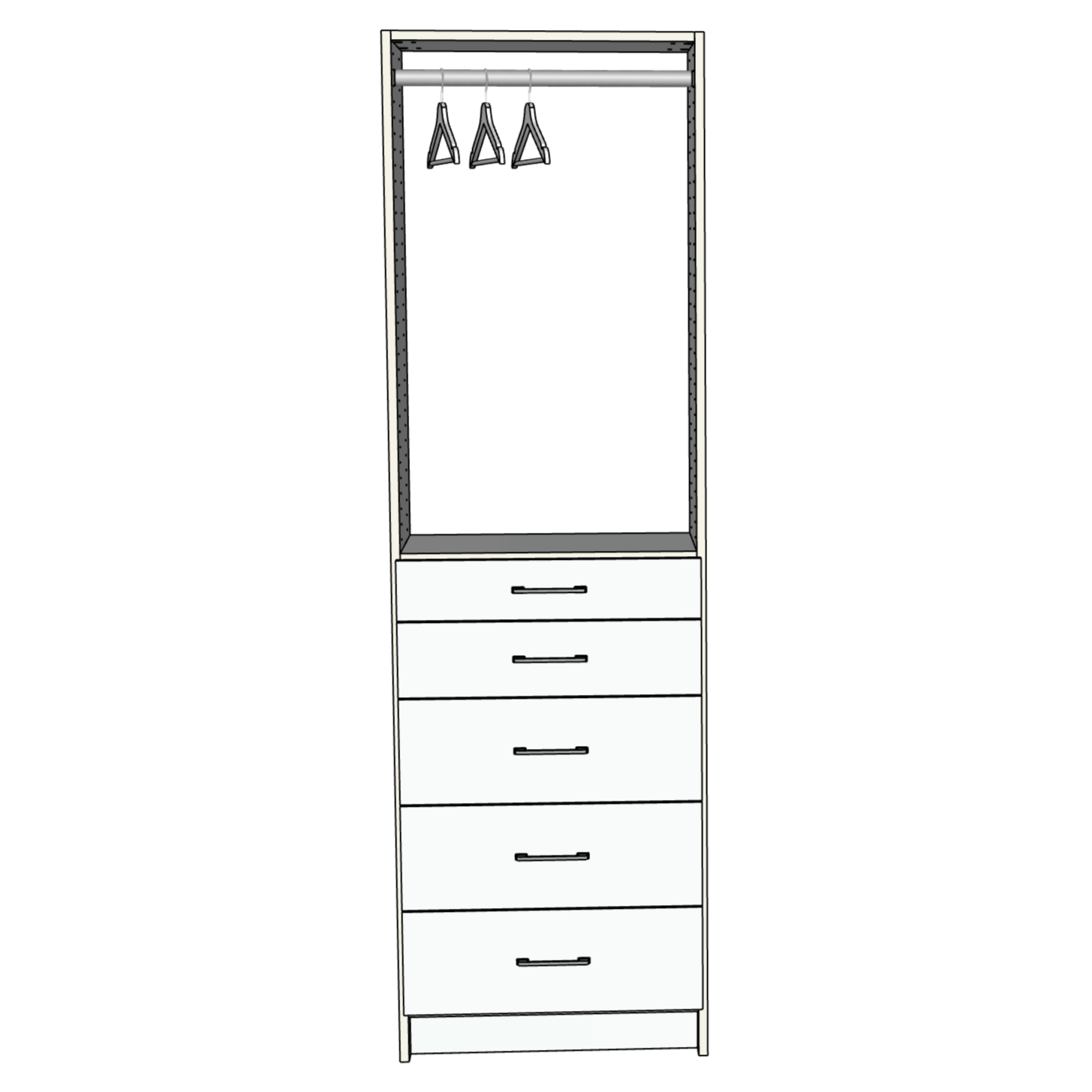 Custom Closet 5 Drawers Upper Hanging Rod