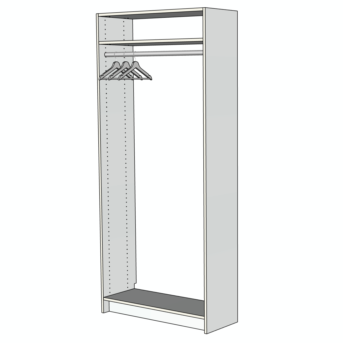Our Custom Closet Tall Hanging unit is made to order as a floor standing unit with toe kicks for a truly custom look.